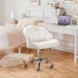 Yaheetech-Cute-Velvet-Desk-Chair-Home-Office-Chair-Shell-Shaped-Back-Vanity-Chair-Modern-Swivel-Chair-with-Wheels-Adjustable-Height-for-Bedroom-White-0-0