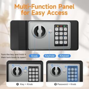 PATRON-Small-Safe-Box-for-Money-with-Code-and-KeysSolid-Mini-Safe-for-Kids-with-Digital-Electronic-Security-Keypad-for-Home-Office-HotelPersonal-Money-Safes-for-Cash0236-Cuft-Black-0-0