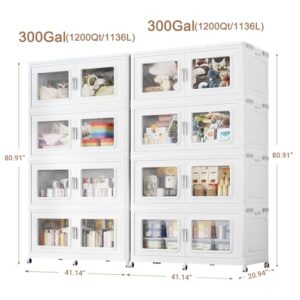 600Gal-Extra-Large-Stackable-Storage-Bins-with-Lids-Wheels-Heavy-Duty-Collapsible-Plastic-Cabinets-Open-Front-Door-for-Effortless-Clothes-Sundries-in-Home-Office-White-8-Pack-0-0