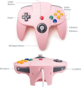 2-Pack-Classic-N64-Controller-kiwitata-Retro-N64-Remote-Gaming-Joystick-Wired-Gamepad-Controller-for-N64-System-Video-Games-Console-Pink-0-2