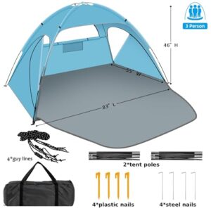 Beach-Tent-Sun-Shelter-Beach-Shade-Tent-with-UPF-50-UV-Protection-for-2-3-Person-Portable-Easy-Setup-Cabana-3-Roll-Up-Doors-8mm-Fiberglass-Rods-Carry-Bag-Included-0-3