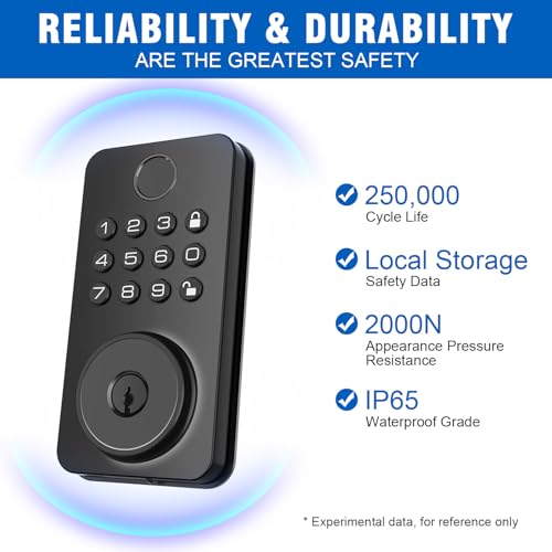 Specification: Fingerprint Door Lock Deadbolt with Handle Set – Smart Keyless Entry Lock with 5-in-1 Unlock, Keypad Lock with AutoLock, App Control – Easy DIY Installation for Home & Rental Security (Metal Black)