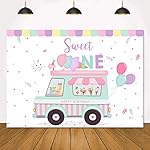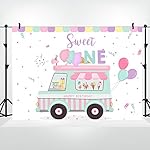 Specification: Lofaris Ice Cream Truck Shop Backdrop Happy Birthday Sweet One Summer Baby Girls Party Photography Background 1st Birthday Sprinkles Balloon Car Cake Table Decorations Banner Photo Booth Props 7x5ft
