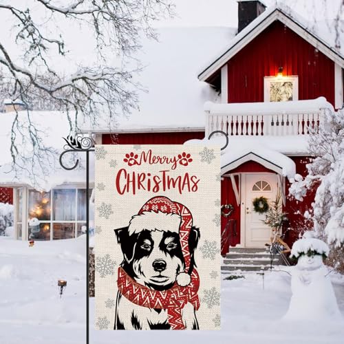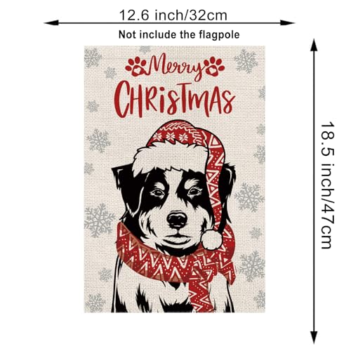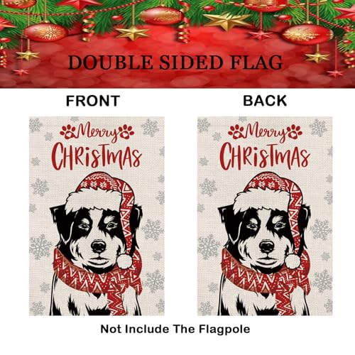Merry Christmas Garden Flag Australian Shepherd Dog with Scarf Xmas Winter Holiday Decorations Vertical Double Sided For Outside Yard Lawn Decor 12.5 x 18 Inch