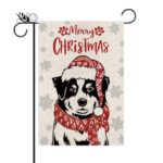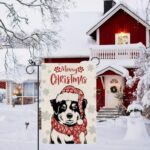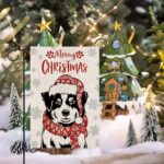 Specification: Merry Christmas Garden Flag Australian Shepherd Dog with Scarf Xmas Winter Holiday Decorations Vertical Double Sided For Outside Yard Lawn Decor 12.5 x 18 Inch