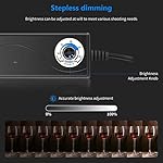 ADJUSTABLE BRIGHTNESS: Equipped with 80 dimmable LED lamps (4 lighting bands/20 LED beads on each band), the light brightness can be adjusted gradually and steady through the knob. 6000-6500K color temperature, High CRI provide adequate light source to shoot quality picture