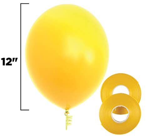 12-Inch Yellow Party Balloons Balloons with Matching Color Ribbon for Yellow Party Decoration, Weddings, Baby Shower, Birthday Parties or Arch Décor