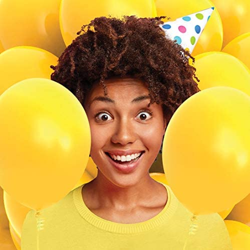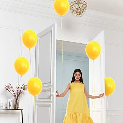 Contains 75 premium yellow color party balloons with matching color ribbons, enough ribbon for all balloons The most perfect balloon pack for your yellow themed birthday party, graduation, outdoor event, bridal or baby shower or any other occasion Use for your yellow themed wedding, anniversary, Bachelorette or mix and match with other color to create that perfect atmosphere in your desired theme Thickened balloons for longer lasting fun; Blows up to 12 inches big, by mouth, air pump or helium Ideal party decoration or party favor. Made of premium, helium-quality, pure latex